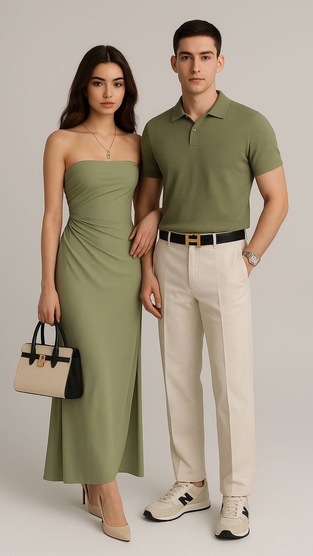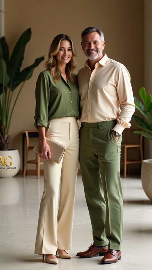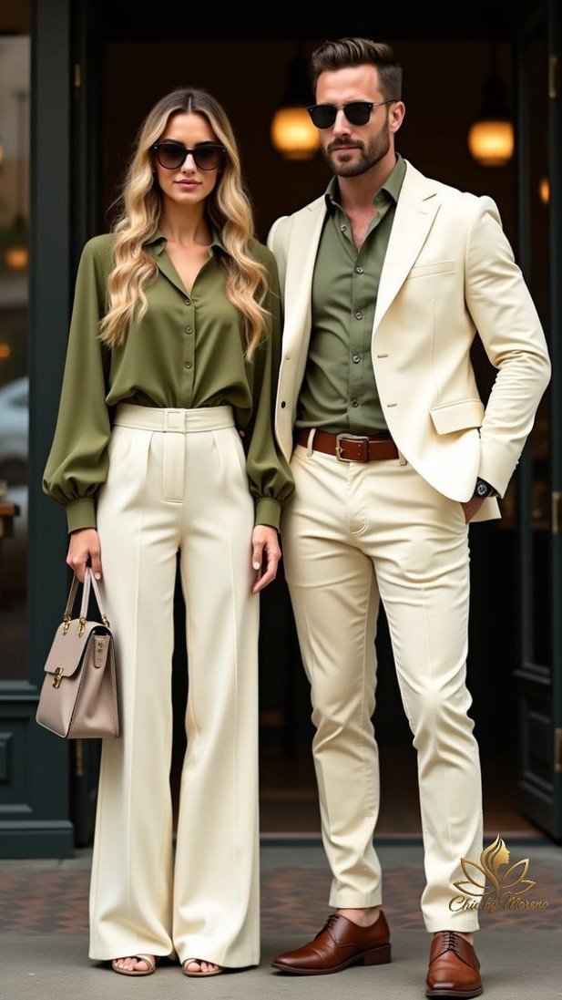 Atenção aos detalhes: O destaque visual fica por conta do nosso outfit exclusivo: o noivo no terno em tons de Verde Oliva/Menta e a noiva em Branco/perola ou gelo.